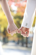 秋の庭園をふたりで歩きながら撮影。なるべく自然体なおふたりを撮影出来るよう、スタッフは遠くから見守っています♡