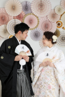 ご両親様もモーニングと留袖の正装で!レンタルの衣装はロケーション撮影にも着ていただけます!