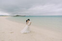 青い海&青い空をバックに新婦様に向かって歩くシーンです♪good!!!