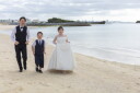 チャペルか移動して、ビーチ撮影スタートです!!新婦様は付属のバルーンスリーブでイメージチェンジ♡新郎様はジャケットを脱いでカジュアルスタイルになりました~~!
