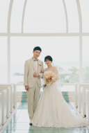 青い空と海が見渡せるチャペル☆その中でのキスショットは美しくてとてもきれいですね~~!