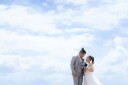 青空とヤシの木でリゾート感満載のお写真です☆彡お二人お疲れ様でした!これからも末永くお幸せに♡