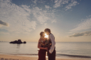 チャペル撮影の後は再びデイタイムで着用した衣裳に着替え、サンセットでのビーチ撮影をスタート!お二人ともお疲れの様子を見せずに、撮影にのぞんでくれました!