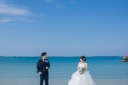 ビーチフォトでは白タキシード&Aライン(少しふんわり感が出てウエストがきゅっと細く見えるスタイル)が人気です☆