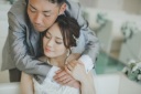 鼻と鼻をくっつけて、上半身の写真を撮りました~!チャペル内で撮影すると、ウエディングっぽさが出て更に写真が綺麗になりますね♪