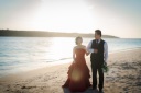 海の遠~くを見つめてます。ご新婦様はドレスの裾を持っていますよ~!
