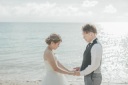 チャペルの後には、ビーチにて撮影します。ご新郎様のジャケットを脱いでベスト姿にチェンジしました!