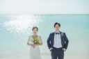 ご新郎様の衣裳は、ベスト付きのブルー色タキシードをチョイス!ビーチでは色が映えて良い感じ~
