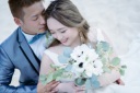 お互いに抱き合い、ブーケを見つめて頂いてます。下目線もお写真だと素敵です~☆