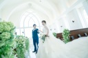 ご新婦様は袖付きのスレンダードレス&ミモザブーケ