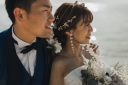 ウエディングドレスはチェンジを行ない、ビーチでの撮影をスタートです!雰囲気変わり良い感じですね~♡