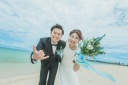 ビーチでの撮影スタートです☆ウエディングドレスとタキシードにチェンジしましたよ~♪