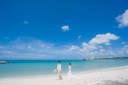 お二人のビーチショットをご紹介します~!!お互いに見つめ合って頂きました♪花嫁さん、ブーケが似合ってて素敵ですね~☆