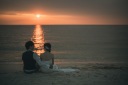 お二人の後ろ姿を撮ってみました!ビーチに向かってピースしてみましたよ~♪