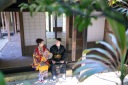 カメラに目線を頂きました~!大きなガジュマルの木の前で撮影していますよ~♪♪