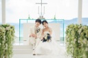 ご新郎様のタキシードは、ブルー色をチョイス!海を眺めて頂いております☆