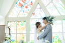 お二人、祭壇側の壁紙を使って撮りました!花嫁さんには座って頂きましたよ~♪素敵な一枚ですねっ!