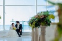 太陽の日差しが海に反射してすごく綺麗です♡背景も新婦様も素敵な一枚になりました◎