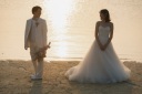 手を取り合って海辺をお散歩❤カメラを気にせずお話ししながらの撮影♬背景が素敵なビーチなのでふとした瞬間も絵になりますね♪