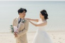 ビーチへ移動して洋装へチェンジ☆風が海辺は強いので風でドレスがなびいて綺麗です♡洋装もよく似合うお二人♡♡