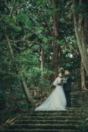向かい合って頭をコツンと合わせるポージングに、風になびかせたベールがすごく美しくてリクエストの多いショットです♪♪