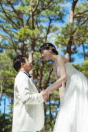 ビーチ横のグリーンでロマンティックな一枚☆彡ドレス姿で座る新婦様はまるでプリンセス♡目の前には王子様登場~~~♪♪