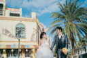 ヤシの木にもたれかかって、ポージングをするお2人♡終始、笑顔で仲良しなお2人♡これからもお2人仲良く末永くお幸せに~~