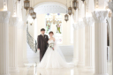 チャペルでの写し込みショット。プロポーズ風でロマンチックに。