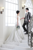 階段のシーンはドレスのトレーンを綺麗に見せることが出来ます。後ろについた髪飾りもバッチリ見えますね!