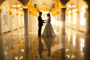 2着目ドレスはストリートでご撮影。手も足も大きく伸ばして元気なお写真に!ご新郎様には片足をあげて頑張って頂きました!