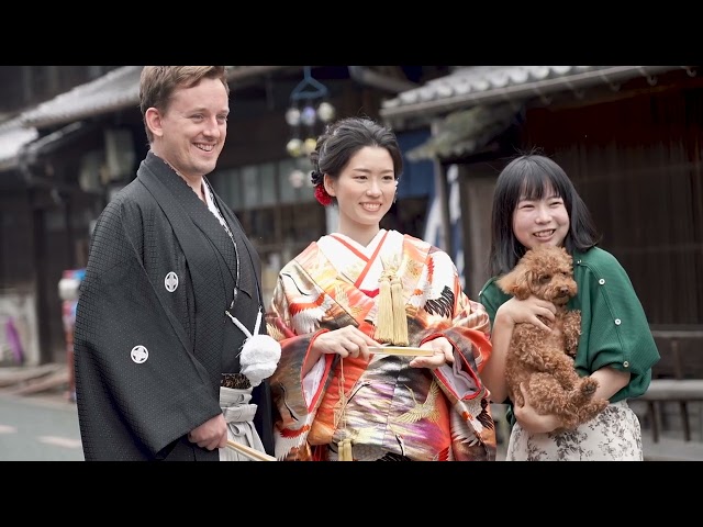 お二人のご希望で和装にピッタリの古い町並みで撮影。ご友人やお母様も一緒に楽しいお時間でした。