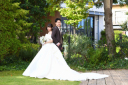 太陽の光を透かすベールの中でそっと見つめ合います。ロケーション撮影ならではの息をのむほど美しいワンシーンです。