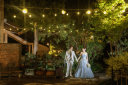 お色直しは煌めくブルーのドレス!緑豊かなガーデンに映えてまるでお姫様のような華やかさです。おふたりの幸せオーラが輝きますね。