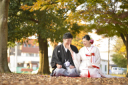 お二人の希望カットになります。季節感の感じる紅葉とお守りで。
