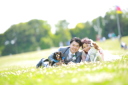 新緑の緑の中家族みんなでお話中お話の内容が気になりますね♪