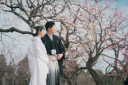 気候が落ち着く春の季節に、鮮やかなピンクの桜と和装ロケーション撮影