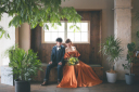 新婦様は大きめのリボンを合わせていて、後ろ姿だけでも心がときめきます。新郎様はカジュアルな雰囲気のタキシード。おふたりともかしこまりすぎずかわいいスタイルです。