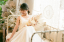 差し込む光に照らされて、美しいご新婦さまのソロショット!自然光をいかしたスタジオなので、季節や時間で変わる光を見ながら、おふたりに合う雰囲気をご提案します♪