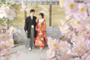 続いてご新婦様のソロショット。桜に囲まれ、素敵な着物のコーディネートもしっかりと残した一枚です。