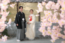 ご新婦様のソロショット。ご希望の桜を手前に少し入れて優しい感じのショットになりました。