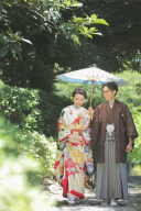 今大人気のペーパーファン♪お持ち込みの妻夫扇子を持ってキュートに。