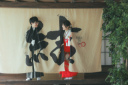 続いては縁側での撮影です!扇子からひょっこりのお顔を覗かせるお二人がとても可愛かったです!