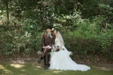ベンチのあるボタニカルな背景で撮影スタート!木漏れ日のようなライティングです。