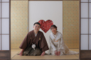 年賀状や招待状などに使っていただきやすいショットです。体勢はとても大変なのですが、お二人の表情は爽やかですね!