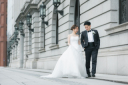ロケ地に選んだのはお二人の出会った大学でした。キャンパス内にこんなに和装にぴったりのロケーションがあるなんて!