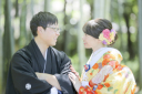 木漏れ日の中に凛と佇むお二人。大人らしさを意識して撮影しました。