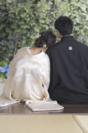 指輪の儀式で改めて愛を誓い合ったお二人。これからも宜しくお願いします、と和室の正座で笑顔で撮影終了です!
