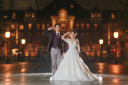 お二人が抱き合う素敵な瞬間。背景のネオンが綺麗ですね。
