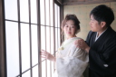 ベージュの背景はレトロな雰囲気です。白無垢のコーディネートに合わせてベージュの背景もいかがでしょうか。
