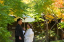 ボリューミーでトレーンの長いドレスが映える一枚!木漏れ日も入れて外風に